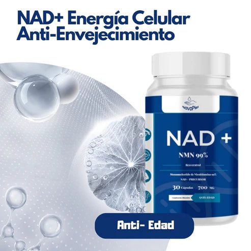 Con los años, los niveles NAD+ en nuestro cuerpo se reducen, afectando tu energía y vitalidad. Nuestro suplemento, con NMN y Resveratrol, combate este declive al aumentar los niveles de NAD+, rejuveneciendo tus células y devolviéndote la energía y bienestar que necesitas.