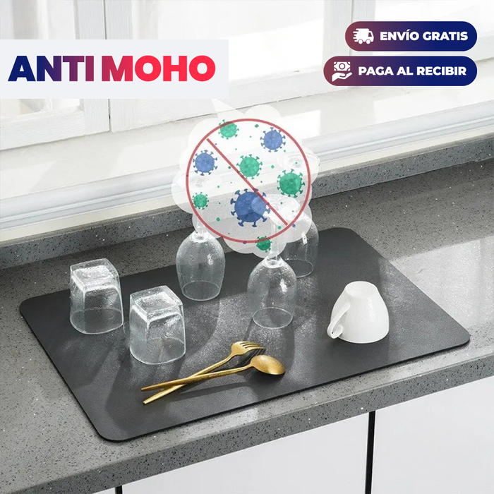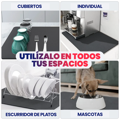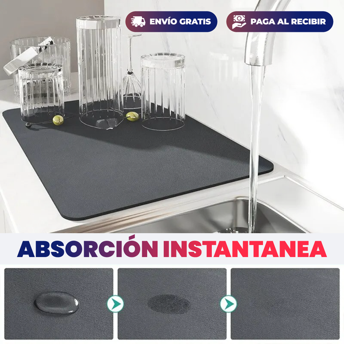El tapete absorbe el agua antes de que se extienda por todo el mesón de cocina. También se seca 3 veces más rápido; así que puedes despedirte de los paños convencionales de cocina.