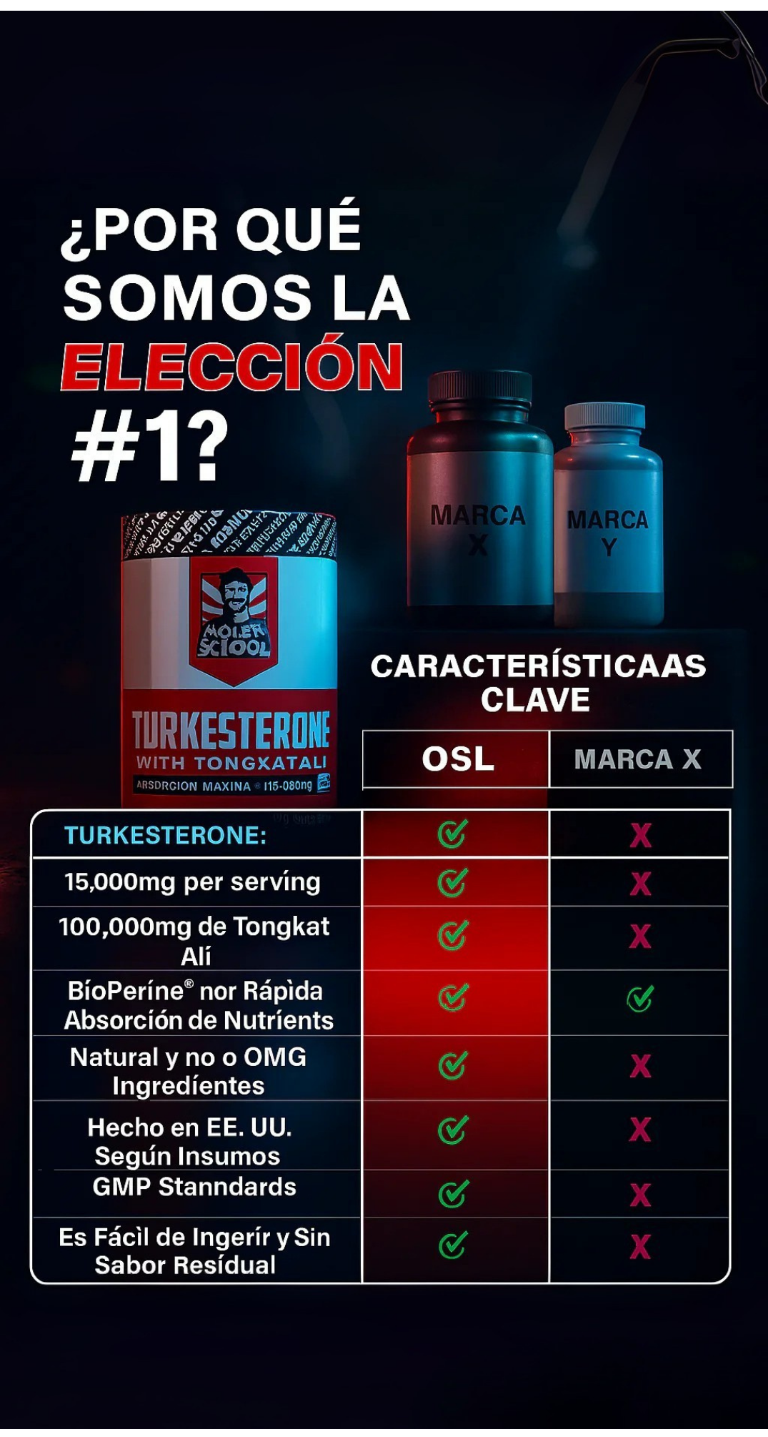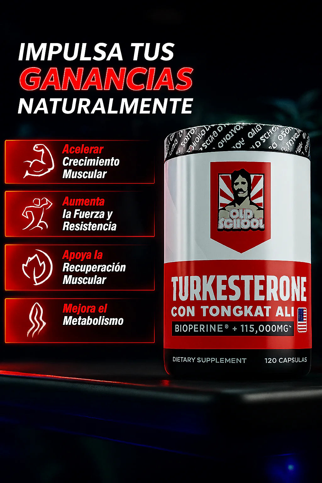 • Ajuga Turkestanica (Turkesterona): Extracto estandarizado para máxima eficacia en el desarrollo muscular.